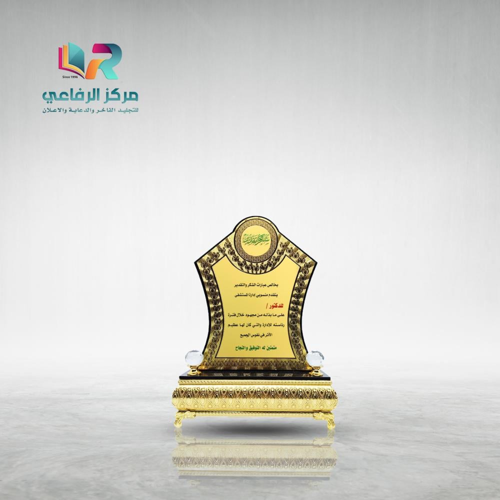 • درع اكريليك مع قاعدة بلون ذهبي فريد .